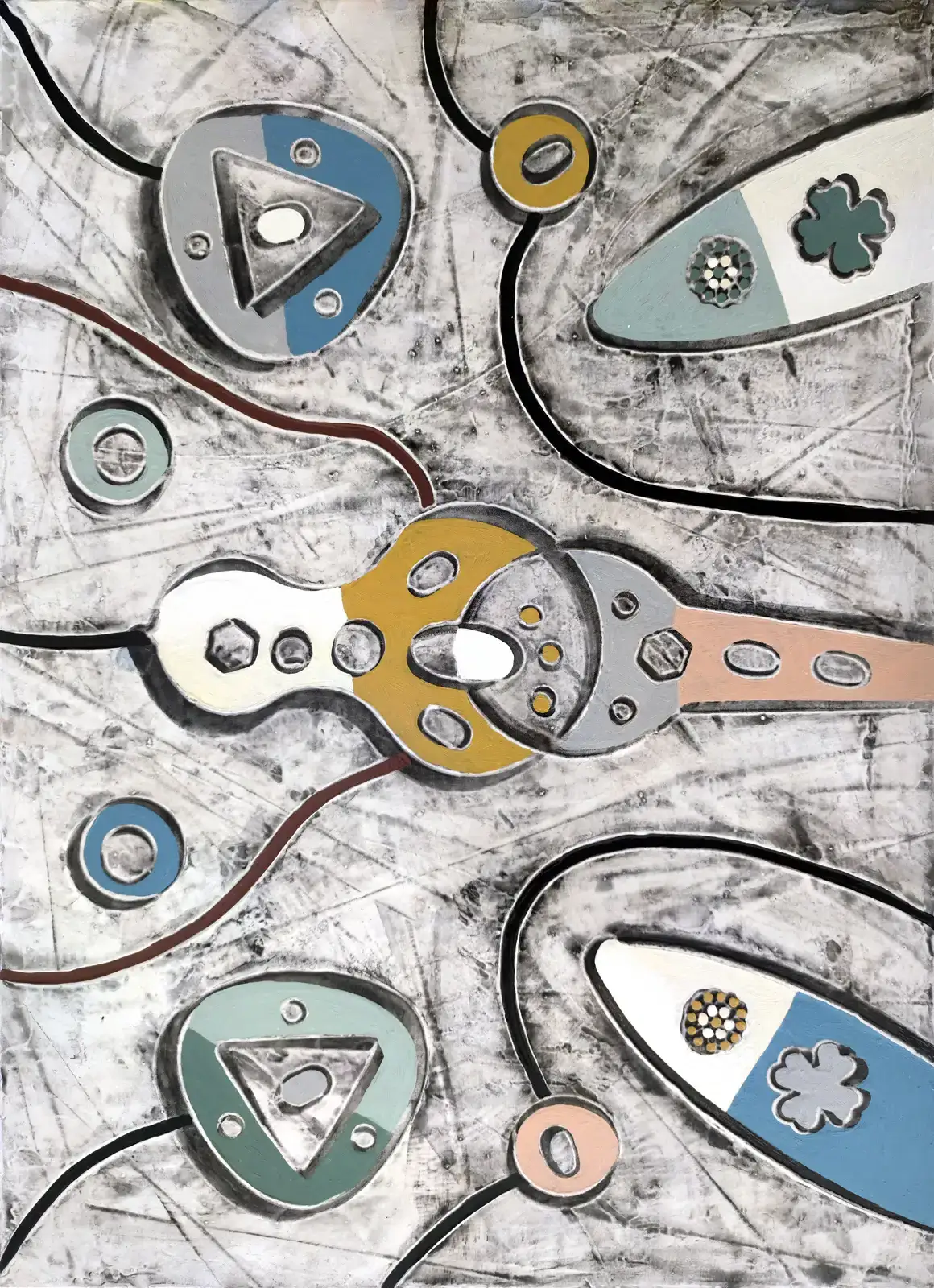 Intrecci fatali, 2019, cm 100 x 50, oil and oxides on bas-relief in plaster on canvas