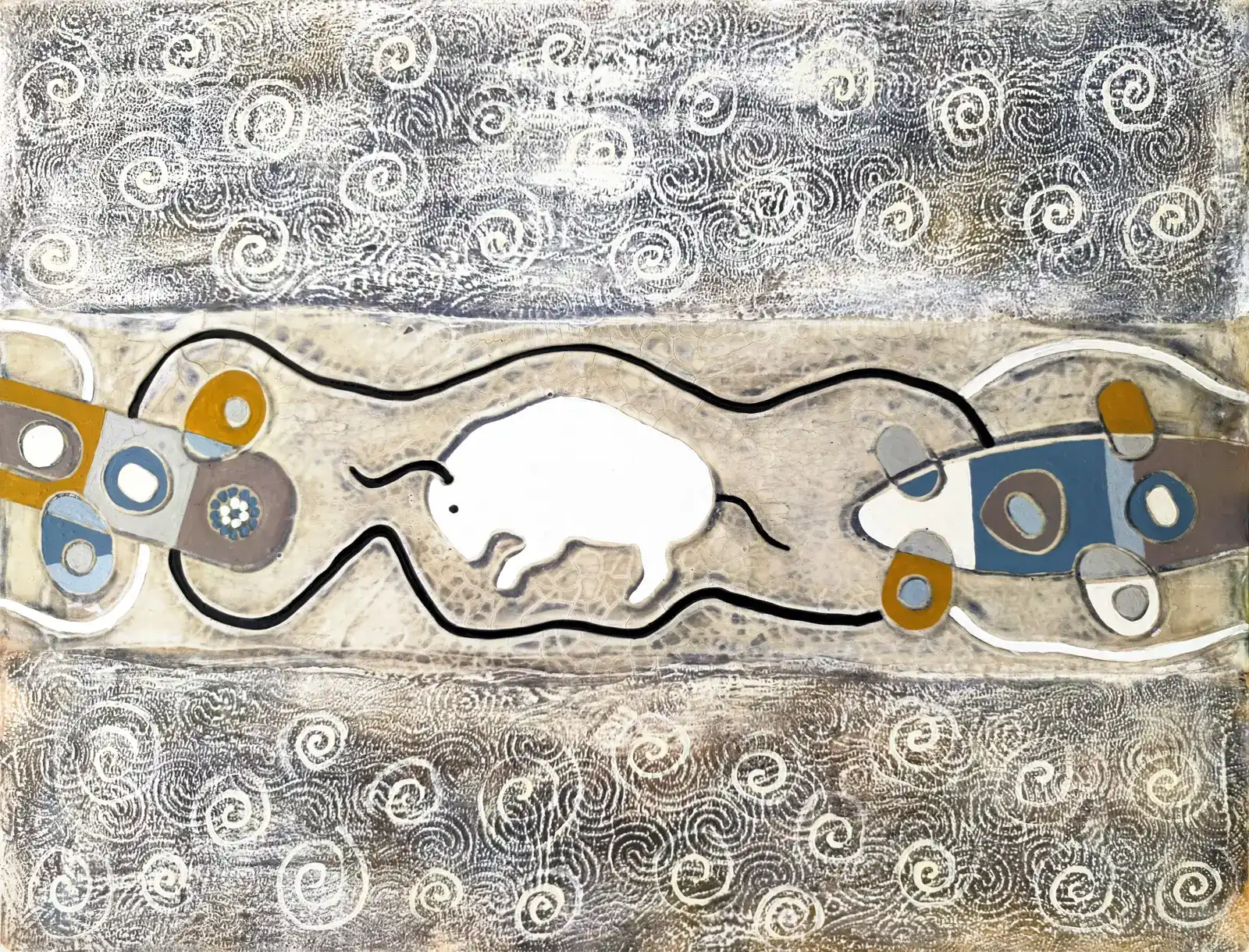 Bisonte bianco, 2012, cm 60 x 60, oil, henna and acrylic on bas-relief in plaster on canvas